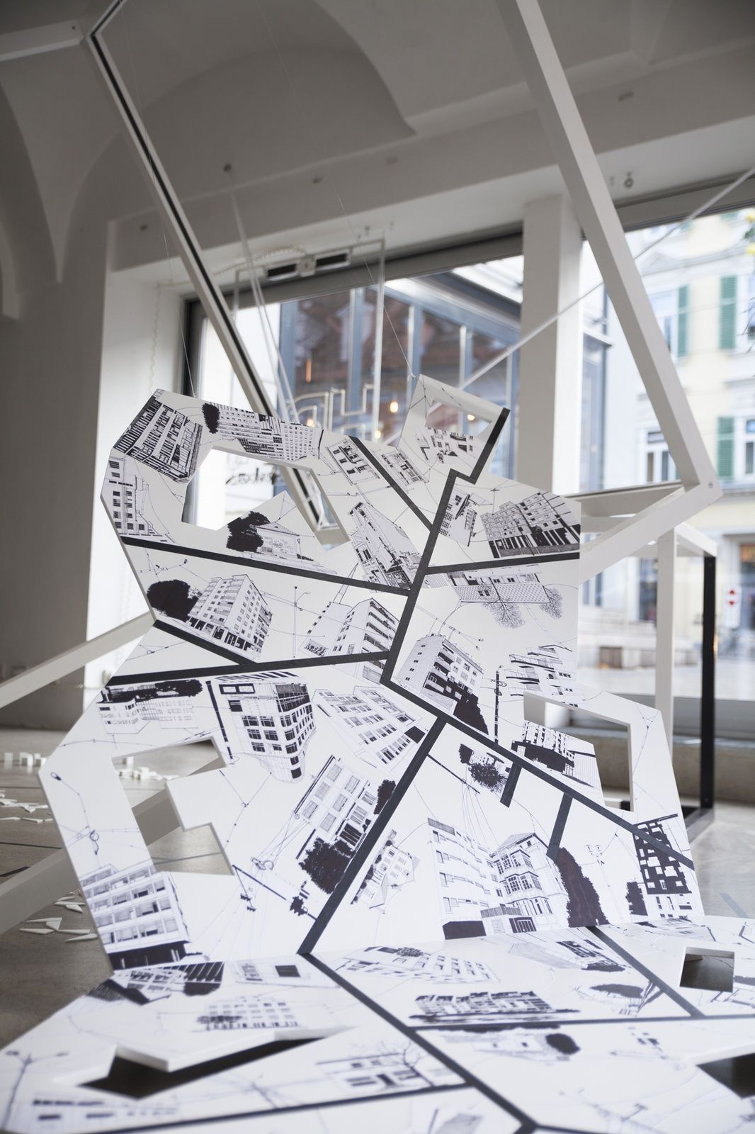 AusstellungWie ist der Raum beschaffen, wenn er nicht erfahren wird? Wie kann man Zeit bildlich darstellen? Die Künstlerin Judith Saupper beschäftigt sich mit genau diesen Fragen und erarbeitet in Form von Collagen, sowohl heuristisch als auch künstlerisch, zweidimensionale Arbeiten auf Papier, Modelle von Hochhäusern und Nicht-Orten sowie collagierte Raum-Objekte und Installationen.