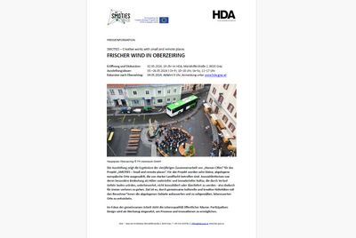 "SMOTIES – Small and remote places" ist ein von der Europäischen Kommission kofinanziertes Projekt im Rahmen des CREATIVE EUROPE CULTURE PROGRAMME. Die Ausstellung zeigt die Ergebnisse der vierjährigen Zusammenarbeit von „Human Cities“ für das Projekt. Dafür wurden zehn kleine, abgelegene europäische Orte ausgewählt, die von starker Landflucht betroffen sind. Auswahlkriterium war, deren besondere Bedeutung als Hüter materieller und immaterieller Kultur. Das Ziel ist, durch gemeinsame kulturelle und kreative Aktivitäten mit den Bewohner*innen die abgelegenen Gebiete aufzuwerten und zu zeitgemäßen, lebenswerten Orte zu entwickeln.
