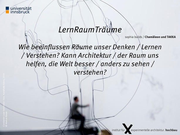 TirolPräsentation „sophia builds: Chamäleon und TAKKA – Wie beeinflussen Räume unser Denken / Lernen / Verstehen? Kann Architektur / der Raum uns helfen die Welt besser / anders zu sehen / verstehen?“