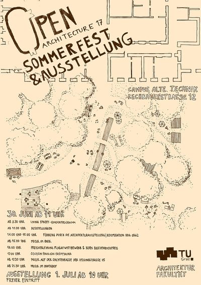 Die Architekturfakultät der TU Graz lädt am 29. Juni ab 12 Uhr zum jährlichen Sommerfest und zur Ausstellung der Abschlussarbeiten ein. Zum Ausklang des Sommersemesters präsentiert die Architekturfakultät der TU Graz Studierendenarbeiten und -projekte aus dem Winter- und Sommersemester 2017/18. Neben einem abwechslungsreichen Programm mit vielfältigen Thementouren gibt es Livemusik, Bars und Kulinarik.