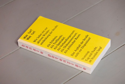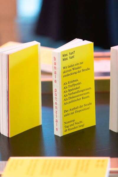 BuchpräsentationZur banale potenziale erscheint eine Publikation, die zum einen eine Retrospektive der 48-stündigen Auseinandersetzung mit dem öffentlichen Raum bietet und zum anderen zentrale Themen der Ausstellungen und Interventionen aufgreift und weiterführt. Sie versammelt Texte sowie fotografische und künstlerische Arbeiten, die sich aus unterschiedlichen Blickwinkeln den behandelten Fragestellungen annähern. Entstanden ist ein Reader, der als Orientierungshilfe, als Handlungsgrundlage und als Ausgangspunkt für interdisziplinäre Vernetzungen konzipiert ist. Die Publikation wird im Rahmen einer Book Launch Party mit anschließendem Fest präsentiert – eingebettet in die Ausstellung banale potenziale – Labor zur Erforschung der Straße im HDA.