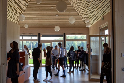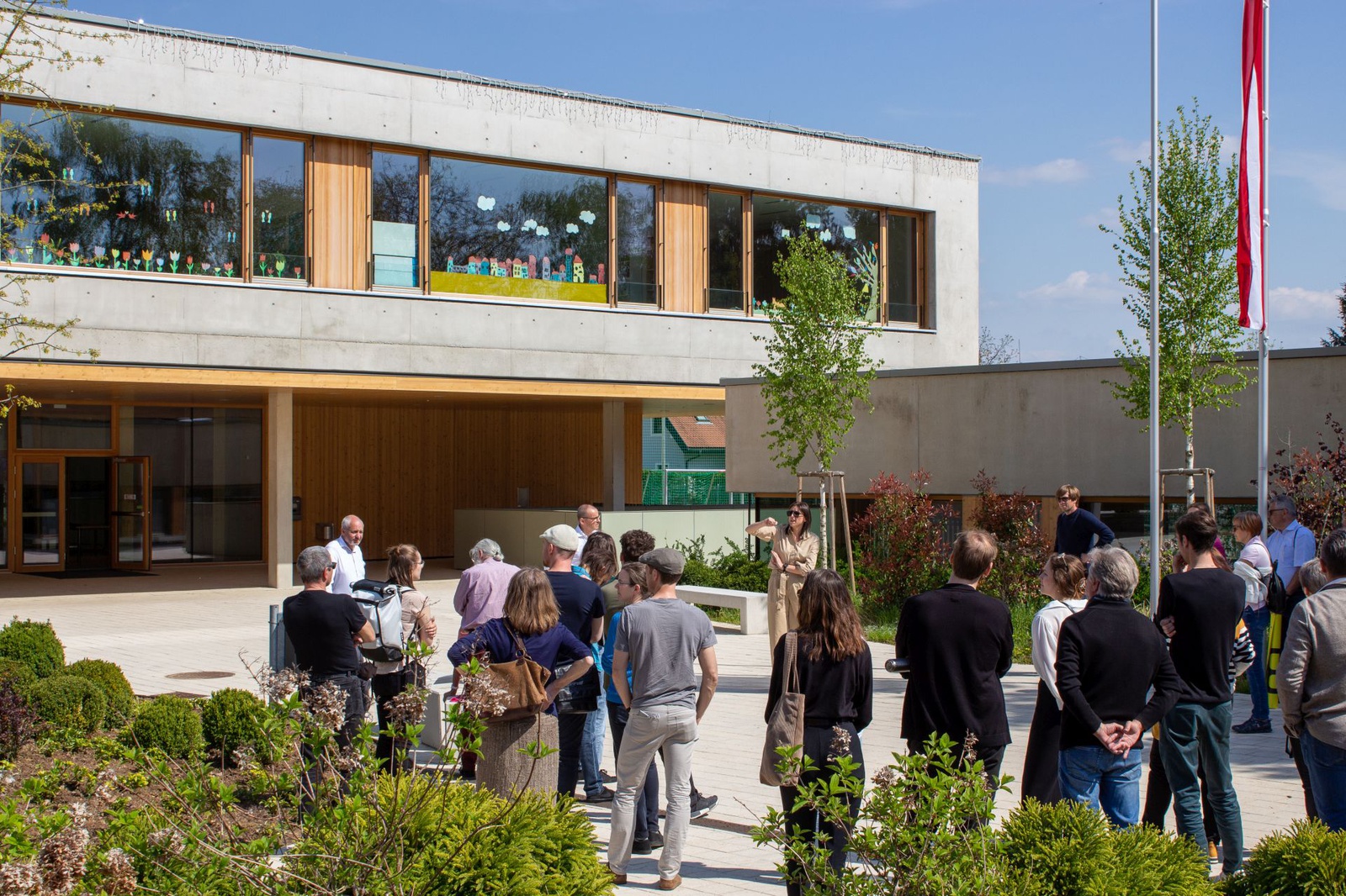 ExkursionKindergärten und Schulen als Räume des Lernens – Vereins- und Pfarrhäuser als Räume des Ehrenamtes. Gemein ist ihnen die gesellschaftliche Bedeutung als Treffpunkt, als Ort für Zusammenkünfte und als Raum für Inspiration. Vier neue Einrichtungen – teils gerade bezogen, teils knapp davor – an unterschiedlichen Orten, alle von außerordentlicher architektonischer Qualität sind Ziele der Rundfahrt. Sie verdeutlichen, wie gemeinschaftliche Räume die baukulturelle Qualität in unseren ländlichen Zentren verankern wie auch prägen können.