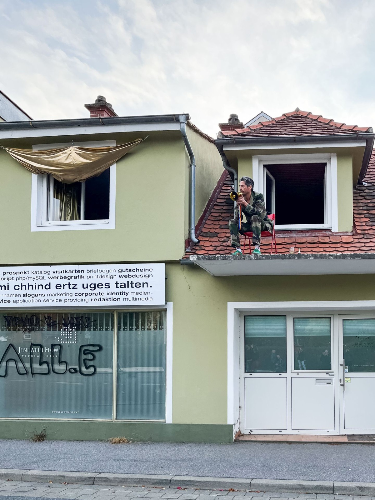 PerformanceDas Haus der Architektur lädt im Rahmen der Ausstellung Verhüllung und Verheißung herzlich zu einem Richtfest mit dem Künstler Sven Borger ein. Bei seiner Performance enthüllt Sven Borger ein unterweltigendes Baustellenplakat an einer Baustelle im Grazer Stadtzentrum (Lendkai 95).