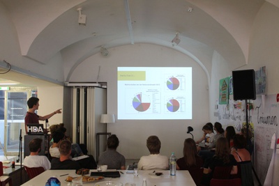 WorkshopIn einem einwöchigen Workshop bieten wir interessierten GrazerInnen jeder Altersgruppe eine Plattform, sich für das Thema Wohnen zu engagieren und Ideen auszutauschen, denn: Wohnen ist eine Aufgabe für alle. Zusammen mit ExpertInnen diskutieren wir relevante Teilaspekte gemeinschaftlicher Wohnformen und erarbeiten unsere gemeinsame Wohnvision.