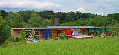 Reihenhaus mit 3 Einheiten mit Nutzflächen von je ca. 130 m2 (Länge 41 m, Tiefe 8 m) mit Untergeschoss in Massivbauweise und Obergeschoss in Holzriegelbauweise für 3 befreundete Familien, die an einer kostengünstigen und doch architektonisch anspruchsvollen Lösung interessiert sind.