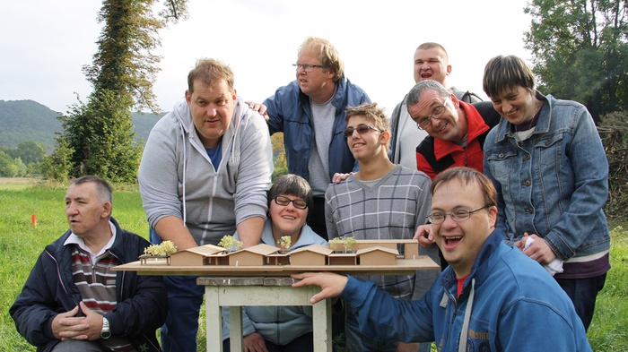Häuser und Innenhöfe bieten eine Abfolge von öffentlichen und privaten Funktionen, von laut zu leise an. Einladend und für alle offen das erste Haus, hier findet Begegnung stattf; Begegnung der KlientInnen beim gemeinsamen Mittagessen, aber auch Begegnung mit Gästen und KundInnen, sei es beim Verkauf der eigenen Produkte, bei Veranstaltungen oder Festen. Der erste Hof hat die Funktion eines Gastgartens. Haus zwei und drei bieten den Werkgruppen der Industrie und Tischlergruppe Platz, der zwischengelagerte Innenhof kann für Pausen aber auch zum Arbeiten genutzt werden.