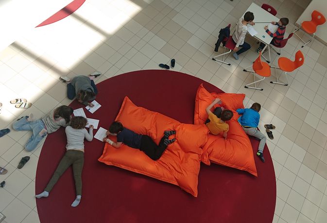 Während des Aktionstages führen Kinder der 4. Klassen durch das Gebäude. Durch diesen Einblick in die Lernwelten der Schüler:innen sehen wir unmittelbar, wie miteinander gelernt und gearbeitet wird. Die Schüler:innen der Volksschule haben sich im Alltag und in Workshops mit der Architektur und ihren Bedürfnissen beschäftigt. Um 10.00 Uhr führen die Expert:innen der 3. Klasse im Dialog mit den Architekten Peter Larcher und Kurt Rauch durch ihren neuen Schulraum, moderiert von Sibylle Bader/Wanderklasse. Für das leibliche Wohl sorgt der Elternverein.