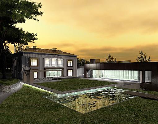 - Umbau einer bestehenden Jahrhundertwendevilla und Neubau eines Wellnessbereiches, auf einem ca. 35.000 m² großen, mit Schwarzkiefern bewaldeten Grundstücksareals.