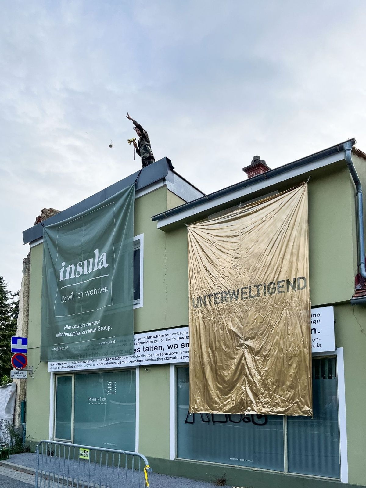 PerformanceDas Haus der Architektur lädt im Rahmen der Ausstellung Verhüllung und Verheißung herzlich zu einem Richtfest mit dem Künstler Sven Borger ein. Bei seiner Performance enthüllt Sven Borger ein unterweltigendes Baustellenplakat an einer Baustelle im Grazer Stadtzentrum (Lendkai 95).