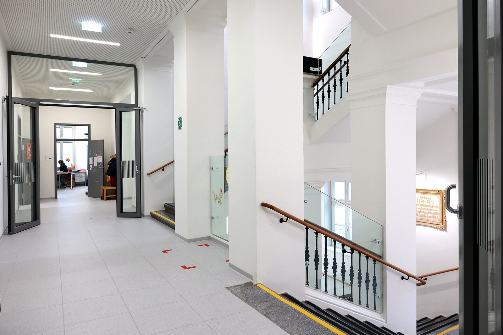 der aus Sicherheitsgründen von der Platzfront in den Schulhof verlegte Haupteingang,