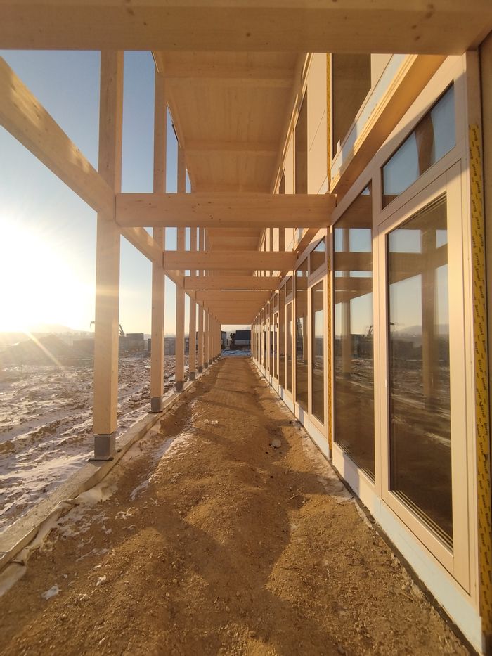 Der Neubau besteht aus einem klar gerasterten Holzbau, der maximale Flexibilität für zukünftige Nutzungsvarianten offenhält und einem massiven Lehmkern, der die Erschließungs- und Servicezone aufnimmt und durch ein innovatives Energiespeicherkonzept das Raumklima reguliert. (Text: Juri Troy)